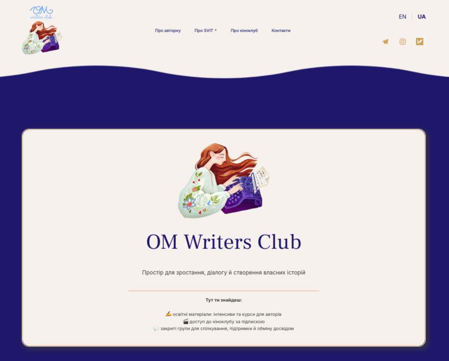 Сайт для авторки та сценаристки і її клубу та освітніх продуктів.