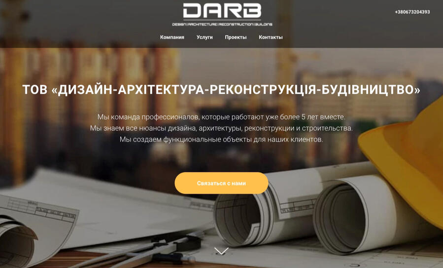 Сайт для будівельної компанії. На жаль вже не активний. Був створений на платформі Tilda 2020 року.